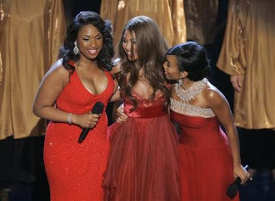| A little late but blogger was giving me trouble this week. Here is Jennifer Hudson singing "And I am Telling You" at Clive Davis's party. |